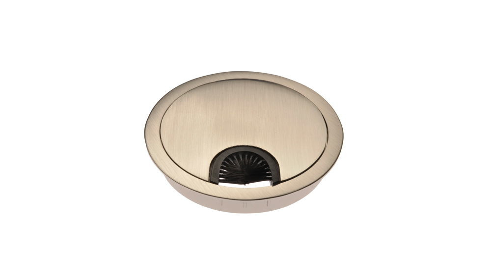 O Passa Cabo em ZAMAK - Ø70 mm utilizado em tampos ou painéis se destaca pelo travamento da tampa e das cerdas especiais. Possui acabamento cromado e aço escovado.